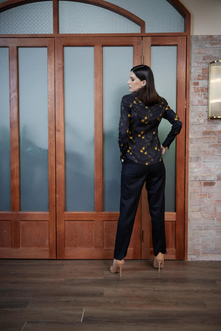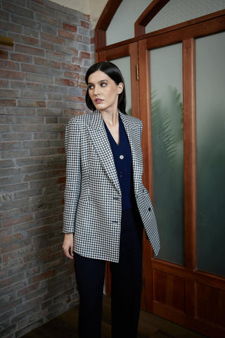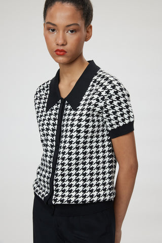 Vicenza Cardigan - Button down blouse in black and white dogtooth