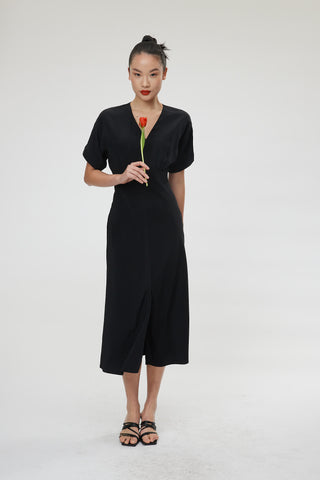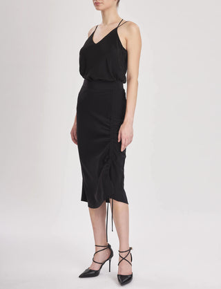 Cumbria Skirt - Midi slip skirt in black silk crepe de chine