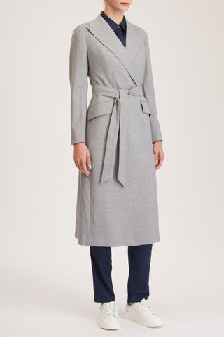 Darlington Jacket - Double breasted long jacket in light grey pure wool
