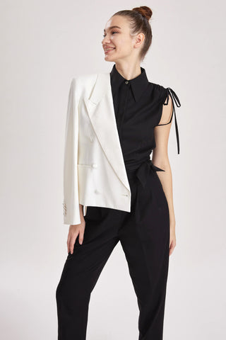 Revenna Blouse - Double breasted tailored waistcoat in white