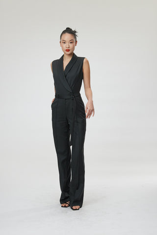 Bergamo Jumpsuit - Shawl collar jumpsuit in charcoal black