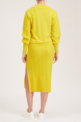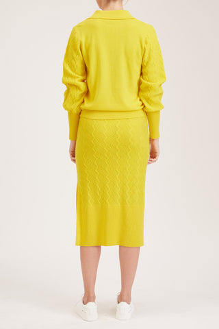 Rouen Knit Skirt - Knitted pencil skirt with side slit in yellow cashmere