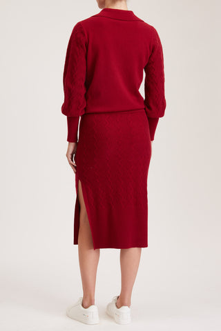 Rouen Knit Skirt - Knitted pencil skirt with side slit in red wine cashmere