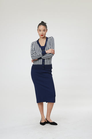 Luca Cardigan - Cardigan in navy & white dogtooth jacquard knit