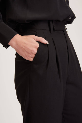Southampton Trouser - High waisted pleated trousers in black crepe