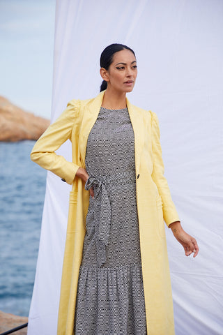 Darlington Jacket - Double breasted long suit jacket in pure beige wool