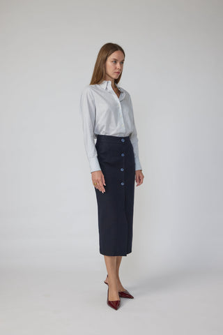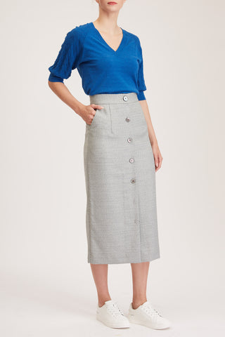 Richmond Skirt - Maxi skirt in white/ grey diamond twill