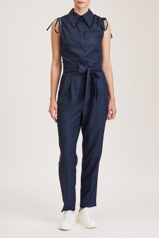 Margate Jumpsuit - Sleeveless jumpsuit in navy wool blend
