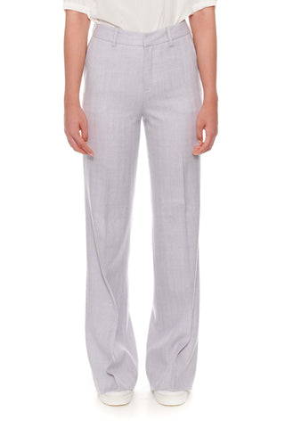 Bordeaux - Bootcut wool suit trousers in sky grey herringbone