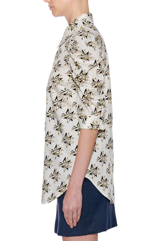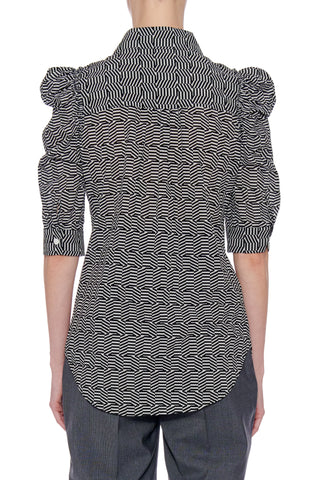 Andalusia Blouse - Short puffed sleeve button down blouse in a print