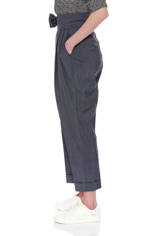 Dunkirk Trousers - High-waisted slim cigarette trousers in navy