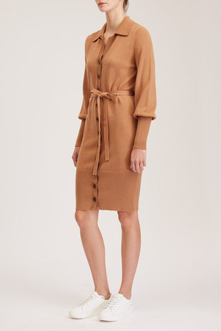 Swindon Knit Dress - Plain knit, loose fit midi dress in beige