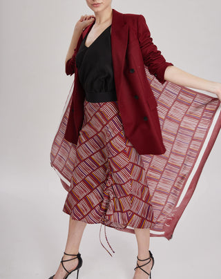 Cumbria Skirt - Midi slip skirt in printed red wine silk crepe de chine