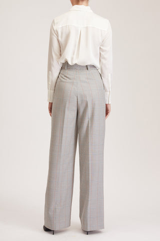 Almeria Trouser - Wide leg, high waisted trousers in light grey tartan