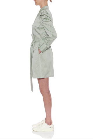 Jean Dress - Short shirt dress with leg of mutton long sleeve in mint