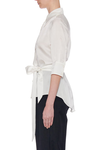 Girona-Salt Shirt - Short sleeve button-down wrap blouse in white