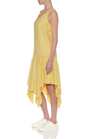 Malaga Dress - Sleeveless shift dress with side drapes in yellow