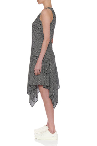 Malaga Dress - Sleeveless shift dress with side drapes in a print