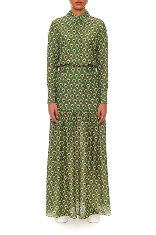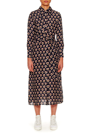 Cardiff Dress - Printed midi shirt dress in red wine silk crepe de chine