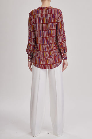 Canterbury Blouse - Printed silk V-neck blouse in red wine silk crepe de chine