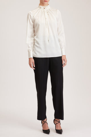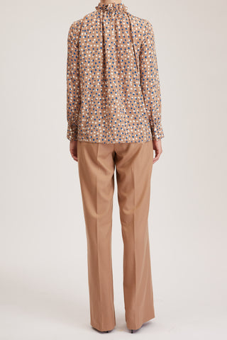 Leeds Blouse - Gathered neckline, silk blousein beige print