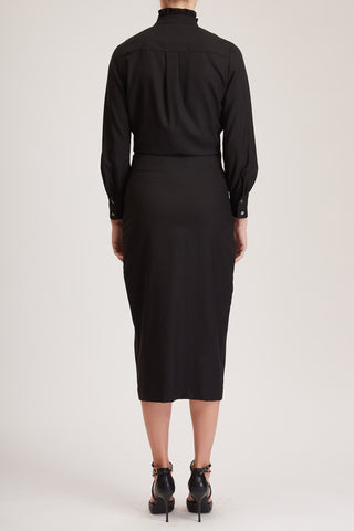 Aberdeen Coat - Single breasted long coat in black wool blend