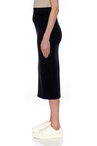 Rouen Skirt - Knitted pure silk pencil skirt with slit in black