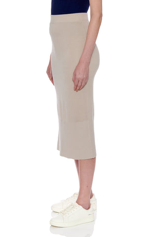 Rouen Skirt - Knitted pure silk pencil skirt with slit in beige
