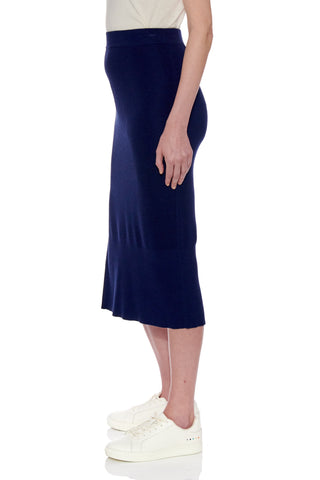Rouen Skirt - Knitted pure silk pencil skirt with slit in navy