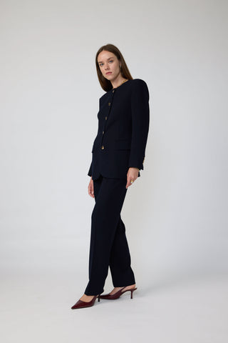 Workum Trousers - Straight cut trousers with turn ups in navy flannel