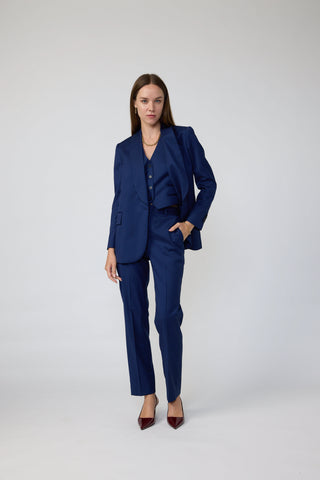 Bristol Jacket - Straight cut boyfriend style grey jacket in navy pinstripe