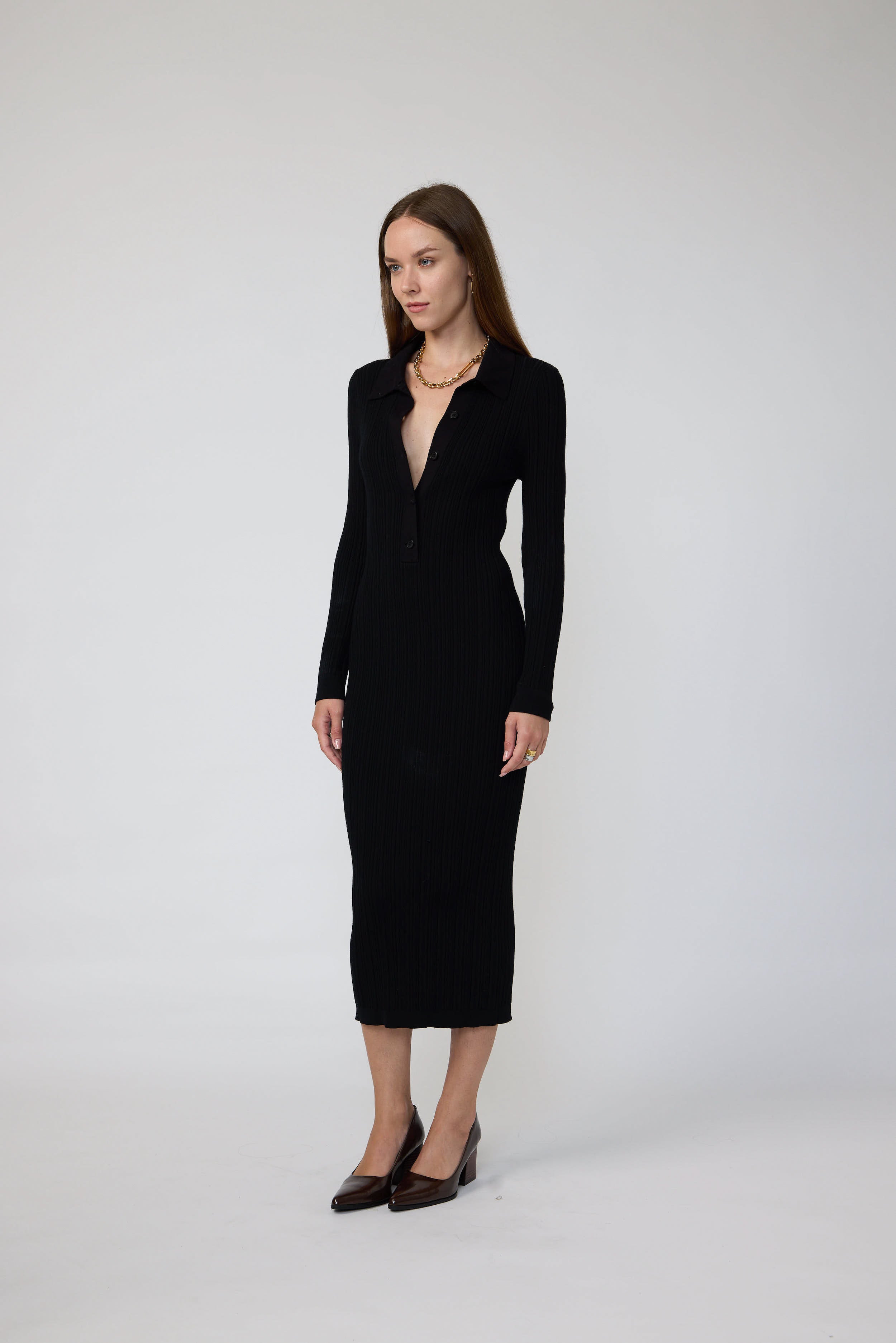 Haarlem Dress - Polo collar knit midi dress