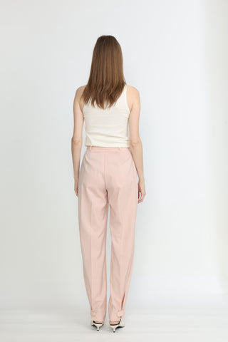 - Classic high-waisted tailored straight-leg trousers with side slits in blush pink