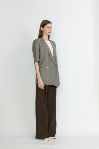 Bristol Straight-Cut Boyfriend Style Linen Jacket in Light Grey